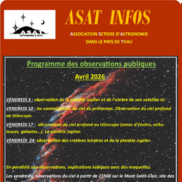 Depuis 1994, l’Association Sétoise d’Astronomie dans le Pays de Thau (ASAT) propose de faire découvrir le ciel et ses objets au plus grand nombre, aux curieux comme aux passionnés d’astronomie.