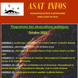 Astronomie à Sète – Programme du mois d’Octobre 2025 à l’ASAT