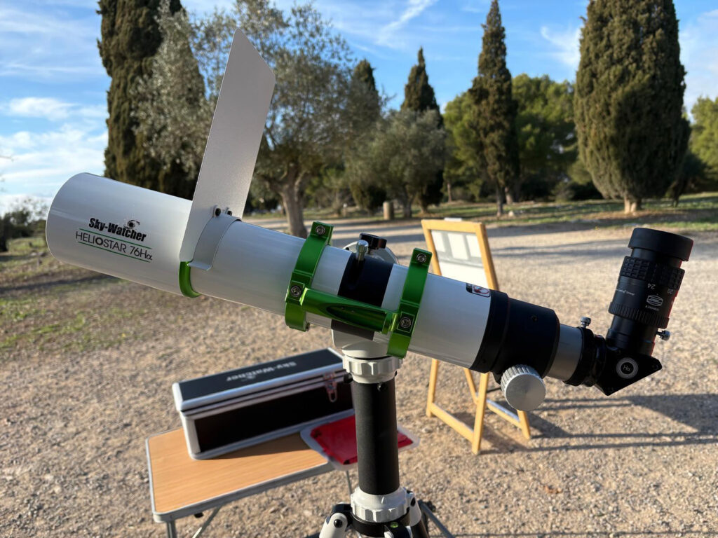 Lunette solaire SkyWatcher Heliostar 76 Ha sur sa monture SolarQuest