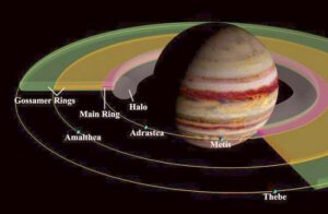 Elle survole la géante gazeuse à seulement 278 000 km de sa surface de gaz. Ce sont ensuite les satellites Io (à 18 460 km de distance), Ganymède (112 030 km), puis Europe (732 270 km) qui seront la cible de la caméra de Voyager 1 le même jour. La sonde découvrira notamment les trois anneaux de Jupiter, bien plus ténus que ceux de Saturne évidemment : le halo, l’anneau principal et le gossamer (gaze, en anglais).